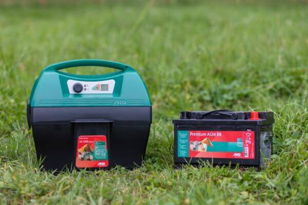• zelo zmogljiva 12-voltna akumulatorska naprava za mobilno uporabo ter dolge, obraščene ograje in odporne živali