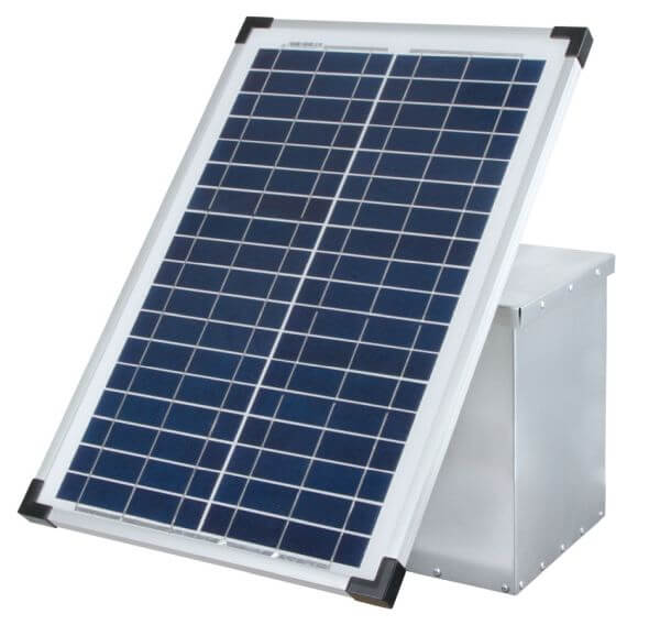 Priporočen solarni modul: številka artikla 375301 (30 W), neposredna povezava z 12-voltno baterijo, montaža npr. na kovinsko ohišje
