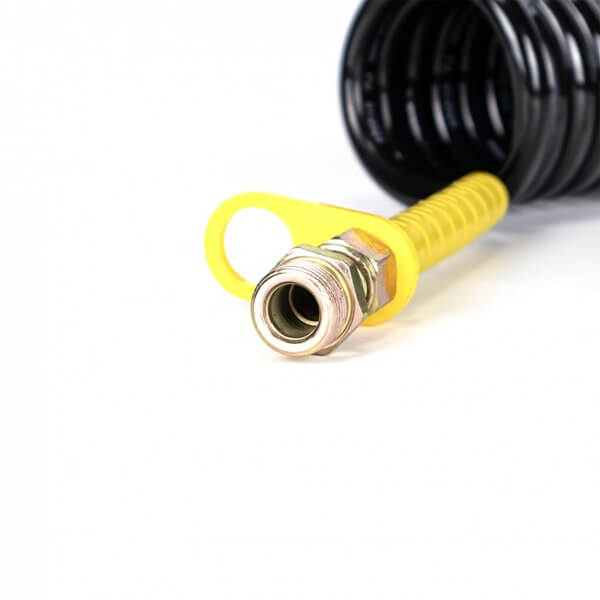 Cev za zračne zavore/spiralna rumena je kakovostna in prožna cev, namenjena povezavi med vlečnim vozilom in prikolico.