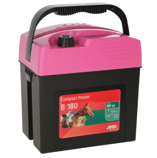 Pašni aparat AKO Compact Power B180 je zanesljiva 9/12-voltna baterijska naprava za mobilno uporabo, idealna za manjše in neobraščene pašnike. Namenjen je paši konj, goveda ter tudi manjših živali, kot so psi in mačke. Naprava je odlična izbira za začetnike, saj združuje enostavno uporabo, učinkovito izhodno moč in visoko stopnjo varnosti. Mikroprocesorsko krmiljenje, večbarvni LED prikaz ter robustno ohišje zagotavljajo dolgo življenjsko dobo in zanesljivo delovanje v vseh vremenskih razmerah.