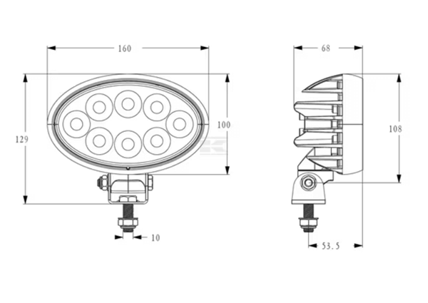 Nudi širok wide flood snop svetlobe za optimalno razsvetljavo delovnih mest na traktorjih, gradbeniških strojih, tovornjakih ali v delavnicah.