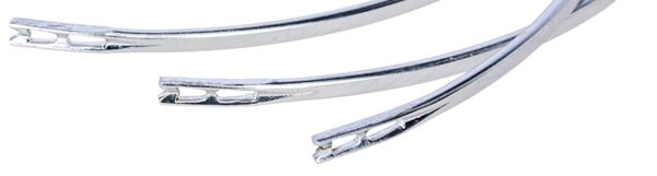 Zunanja rezalna konica: Rezalna igla z lahkoto prodre v vlaknato tkivo, kot sta koža in mišice, kar zagotavlja dobro drsenje, majhen rez in varno šivanje.