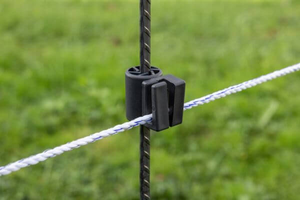 Izolator preprosto potisnete na kovinske stebre/stebre iz steklenih vlaken ali jeklene palice (okrogle ali ovalne s premerom 6–12 mm) do želene višine in potegnite prevodni material.