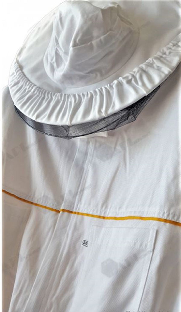lahko perete v pralnem stroju saj je iz 100 % bombaža (brez klobuka). Klobuk ima dvojno zadrgo in je preprosto snemljiv. Spredaj ima dodatno zaščito, ki čebelam brani vstop. Na klobuku je zračna mreža, ki jo na distanci od obraza držita dva obroča. Patenti na hlačah in rokavih onemogočajo vstop čebelam pod obleko. Obleka ima spredaj 4 velike žepe za shranjevanje orodja.