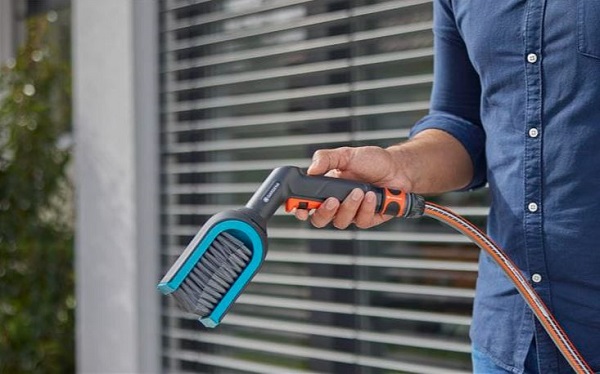 Krtačo preprosto priključite na vrtno cev in z obeh strani obdate letev, pri čemer voda, ki izteka iz zgornjih in spodnjih ščetin, omogoča enakomerno čiščenje.