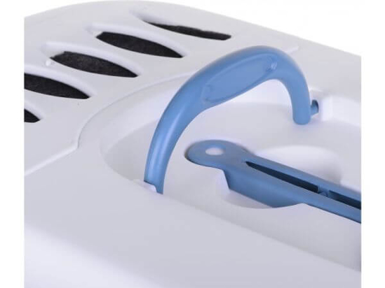 Je prostorno in hkrati udobno. Opremljeno je z loputnimi vrati za lažji vstop in izstop za našega mačjega prijatelja.