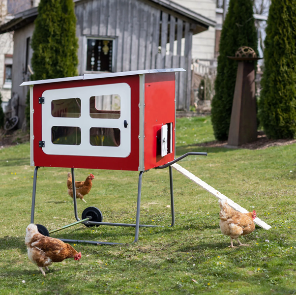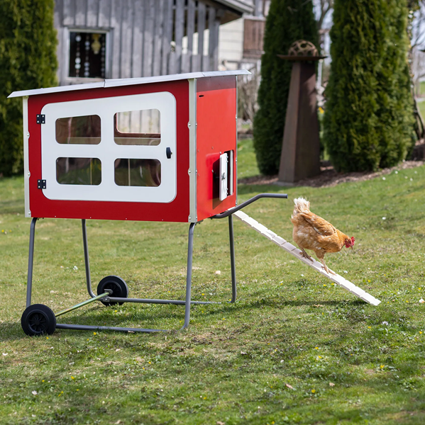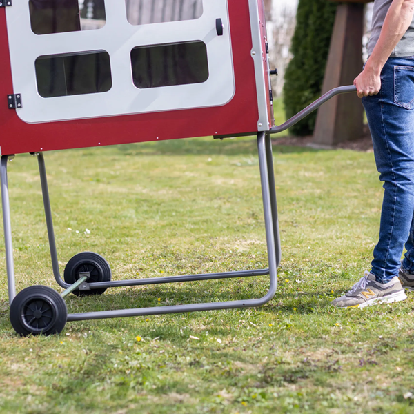 Mobilni kokošnjak združuje visoke standarde dobrobiti živali, robustno konstrukcijo in praktično mobilnost za enostavno rejo perutnine na travnatih površinah.