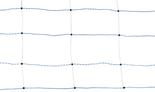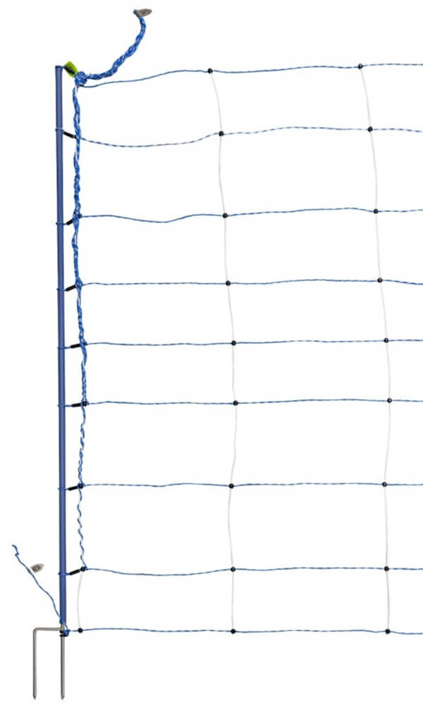 Mreža višine 122 cm ima 9 vodoravnih pletenih pletenic z vodniki iz nerjavnega jekla in bakra, ki zagotavljajo optimalen električni stik ob dotiku. Posebna modro-bela barvna kombinacija poskrbi za odlično vidljivost, tudi v zahtevnih okoljih. Sistem 14 izjemno trpežnih PREMIUM stebrov s pocinkanimi talnimi konicami omogoča hitro postavitev, stabilnost in enostavno prilagajanje terenu.
