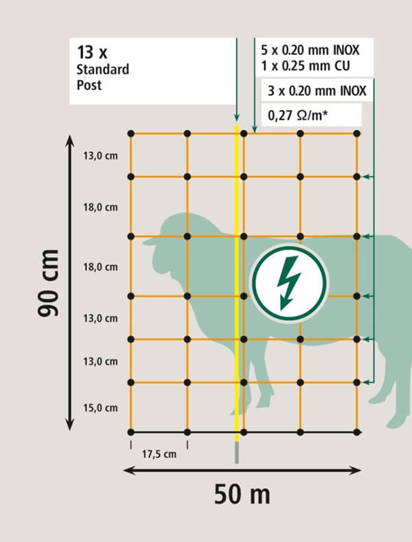 Je zelo dobro vidna, kontrastna barvna zasnova zagotavlja varno ločevanje in pomaga zanesljivo ohranjanje živali znotraj ograje.