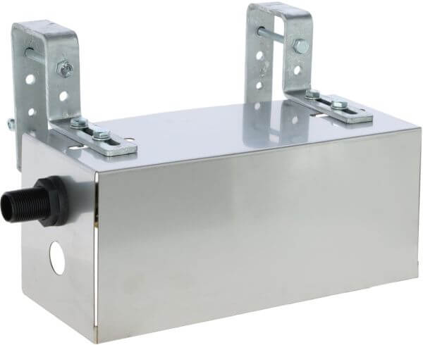 Robustno ohišje iz nerjavečega jekla in pocinkan, po višini nastavljiv nosilec omogočata prilagodljivo namestitev na okrogle ali pravokotne posode za vodo
