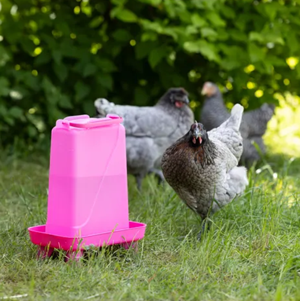 Praktičen napajalnik s kapaciteto 3,5 l zagotavlja stalno oskrbo z vodo za piščance in kokoši.