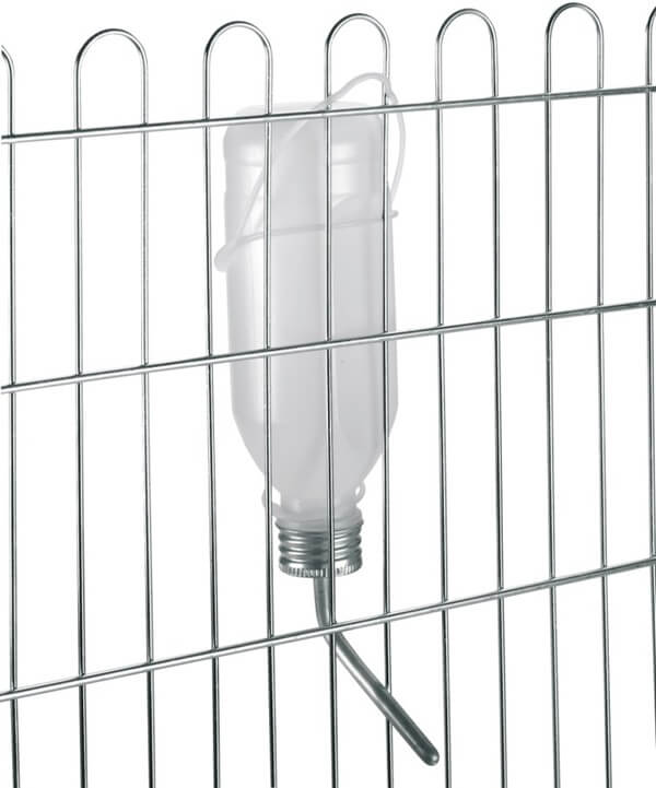 Napajalnik za zajce - plastičen je praktična plastenka za vodo, ki zagotavlja stalno in higienično oskrbo z vodo za zajce in druge male živali.