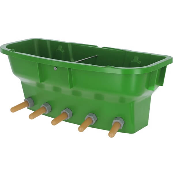 Korito je opremljeno z 5 ventili in 5 latex cuclji, kar omogoča hkratno hranjenje več telet brez porabe dodatnega prostora. Idealno za modularne hleve, Calf House sisteme ali druge profesionalne pašne nastanitve za teleta.