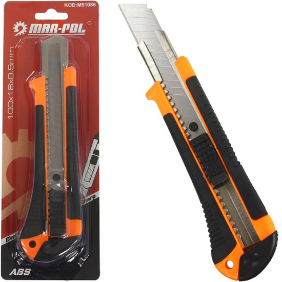 je univerzalen nož za rezanje trakov, kablov, prepog itd. Ima raztegljivo rezilo, ki ga je moč hitro in enostavno zamenjati. Zaradi posebej oblikovanega ročaja, je delo z njim zelo enostavno.