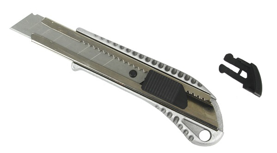 je univerzalen nož za rezanje ozadij, trakov, kablov, prepog itd. Ima raztegljivo rezilo, ki ga je moč hitro in enostavno zamenjati. Zaradi posebej oblikovanega ročaja, je delo z njim zelo enostavno.