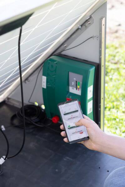 Samozadostno delovanje pašnika in povezava z oblakom: ograjna naprava AKO omogoča neodvisno delovanje ograje na velikih površinah zaradi avtonomnega napajanja in neposredne povezljivosti z oblakom s funkcijo GPS.