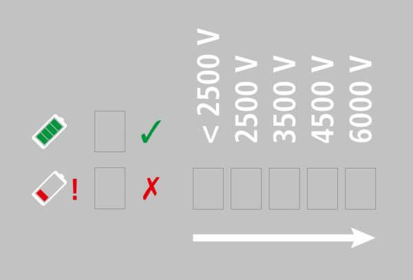 Zaslon: ograja ima večbarvni LED-zaslon s stolpčnim grafom (6 LED-diod). Rdeča LED-dioda prikazuje stanje baterije, ostalih 5 (rdeča/rumena/zelena) pa predstavlja izhodno napetost od 0 V do več kot 6000 V.