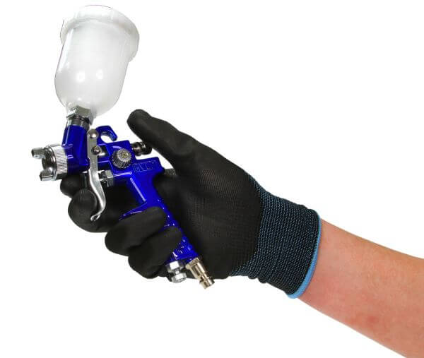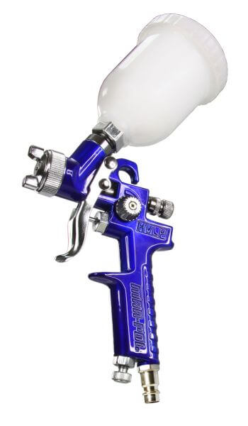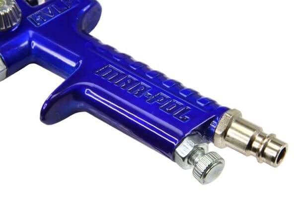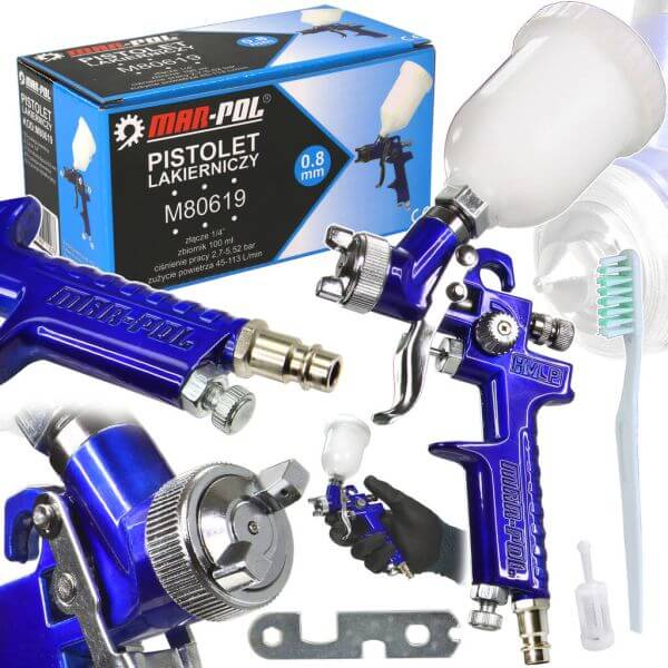 Visokokakovostna pištola za barvanje, opremljena s tremi nastavitvami: zrak, barva in curek. Pištola je opremljena z neodvisnima mehanizmoma za aktiviranje zraka in barve. To omogoča, da stisnjen zrak teče iz šobe, ko rahlo pritisnete sprožilec, in da barva teče, ko povečate sprožilec. To znatno izboljša kakovost barvanja.