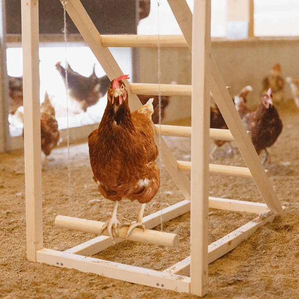 Kokošim omogoča raziskovanje, plezanje in guganje, kar spodbuja njihovo naravno vedenje ter zmanjšuje dolgčas.