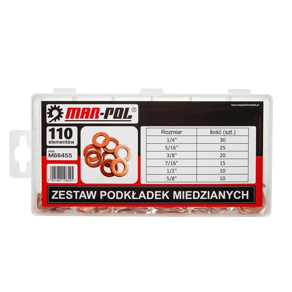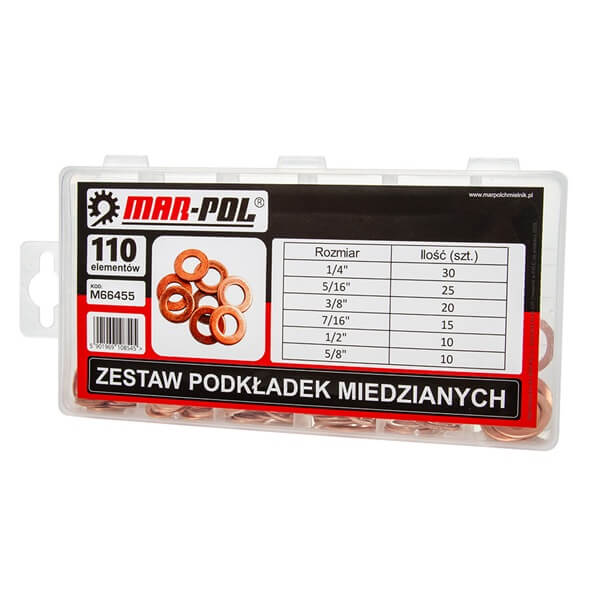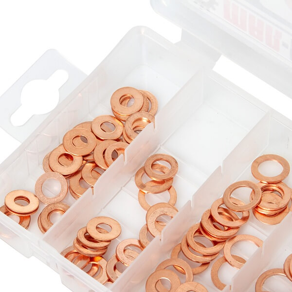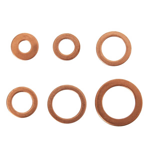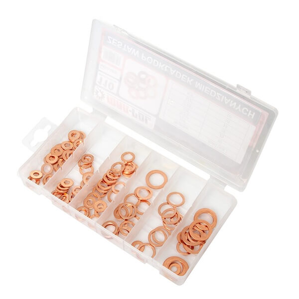 Visokokakovosten komplet bakrenih podložk, sestavljen iz kar 110 kosov različnih velikosti