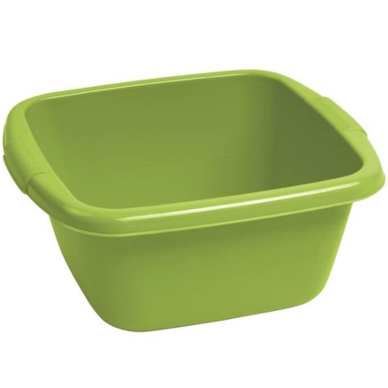 Kvadratna posoda v zeleni barvi je primerna za shranjevanje in organizacijo različnih predmetov.