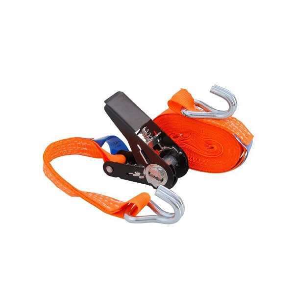 vsebuje komplet transportnih trakov, za pritrditev stvari med transportom. Pas tega izdelka je izdelan iz 100% poliestra in je oranžne barve. Širok je 25 mm. Dolžina pasu je 4 m. Raztezek pasu je 7%.