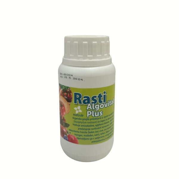 Rasti ALGOVITAL 24 0,25 L je organsko gnojilo na osnovi morskih alg (Ascophyllum nodosum), namenjeno zagonu in hitri obnovi rasti rastlin po stresnih situacijah, kot so poškodbe zaradi škodljivcev, bolezni, presajanja ali neugodnih vremenskih razmer.