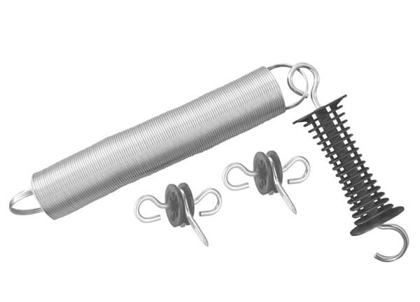 Komplet vratnih vzmeti omogoča enostavno odpiranje in zapiranje ograje, hkrati pa zagotavlja stalno napetost in dober električni stik. Vrtljiva vzmet dolžine do 5 m omogoča prilagodljivo uporabo pri različnih širinah vrat in prehodov.