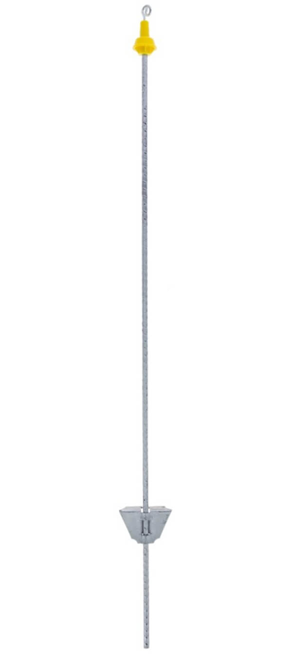Steber iz vzmetnega jekla je robusten kovinski ograjni steber, izdelan iz vzmetnega jekla, opremljen z vrhnjim izolatorjem in stopničko za enostavno vstavljanje v tla.