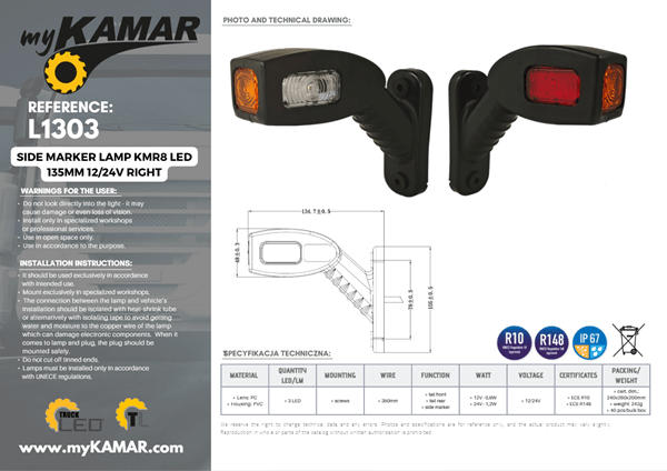 Svetilka označevalna LED levo/desno 100 mm 12/24V