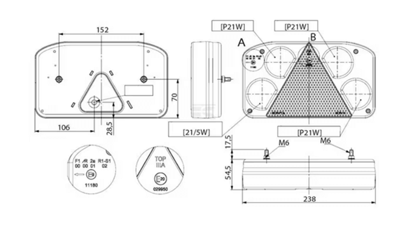 Svetilka stop leva Gopart z večbarvnimi lečami (bela, oranžna, rdeča).