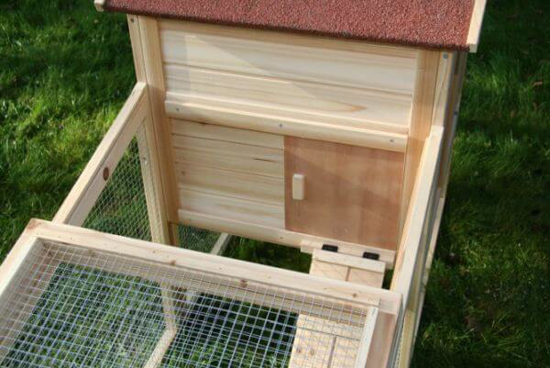 Ima drsna vrata, ki omogočajo dostop do zunanje ograde, vrata na zaklepanje z zapahom na sprednji strani, odstranljiv PVC pladenj za enostavno čiščenje in mrežasto sprednjo stran za boljšo zaščito in prezračevanje.